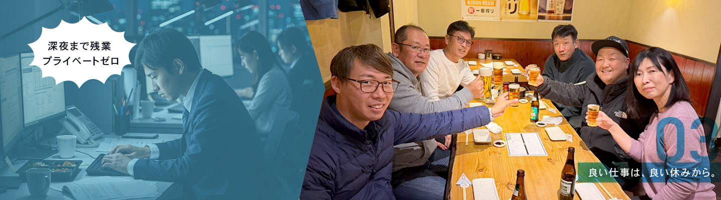 部署の垣根なく、誰もが「困った時はお互い様」の精神で助け合う。この「家族の絆」が最大の強みです。